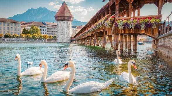 Lucerne nổi tiếng với cây cầu gỗ cổ Chapel Bridge cùng khung cảnh hồ nước và núi non tuyệt đẹp.